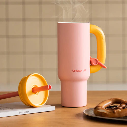 Рожевий термос Chako Lab BaWang з керамічним покриттям і вакуумною ізоляцією зберігає напої гарячими або холодними протягом кількох годин.