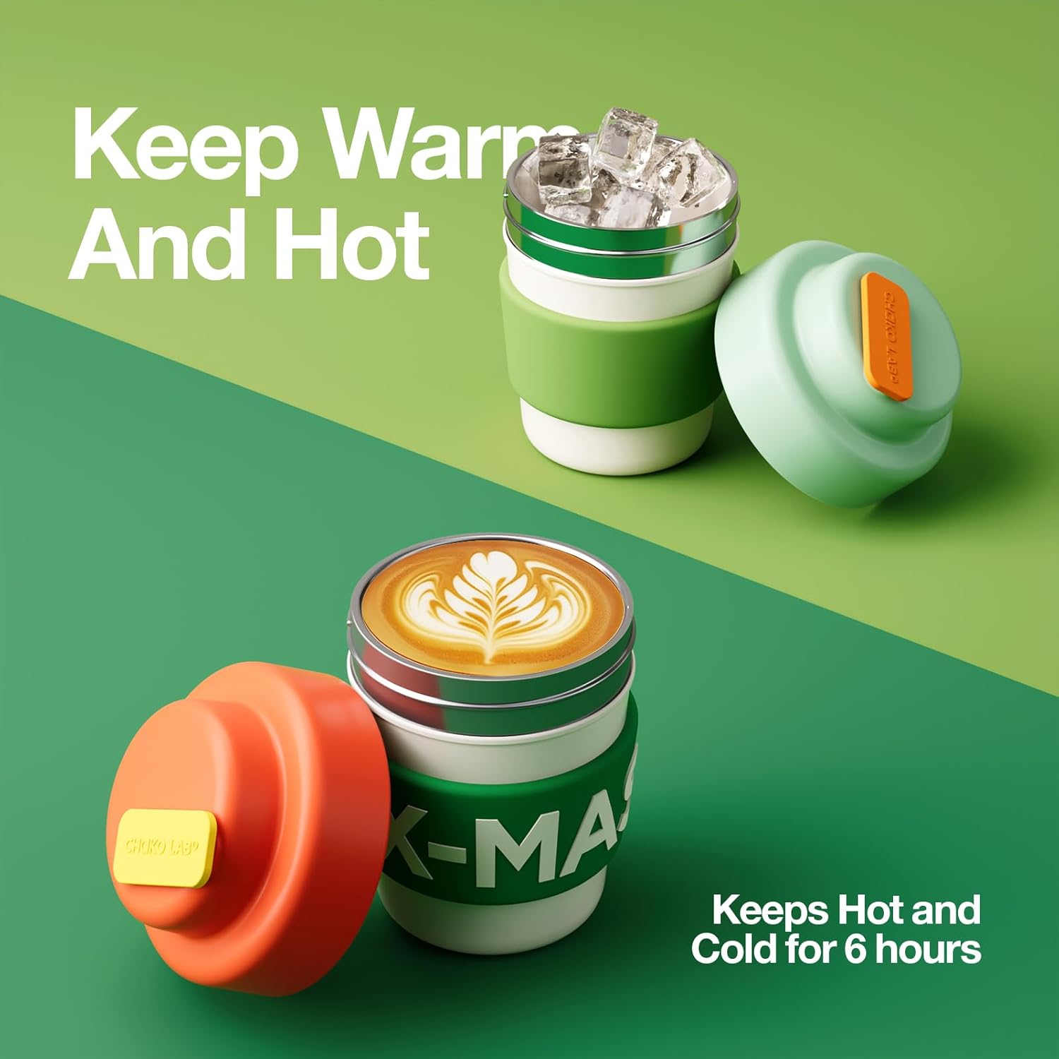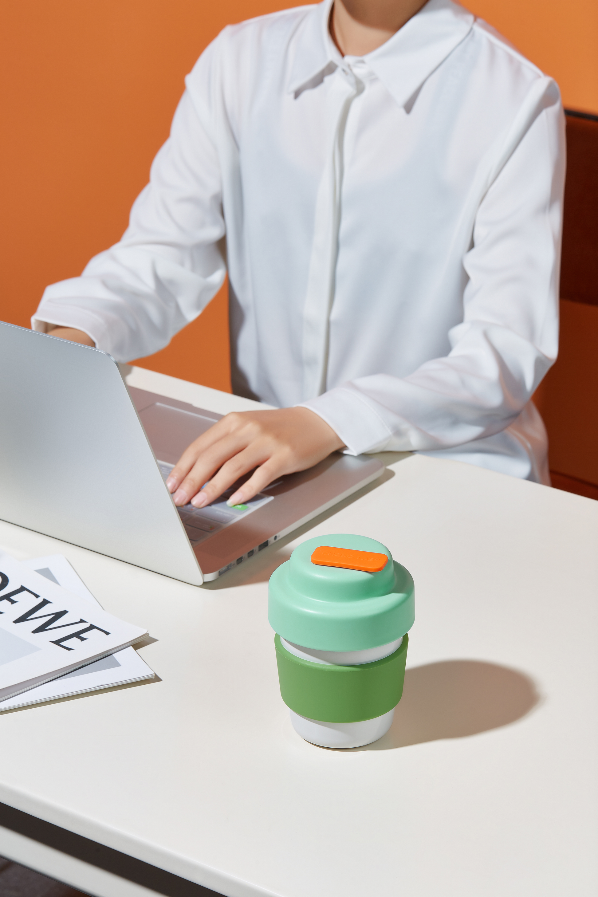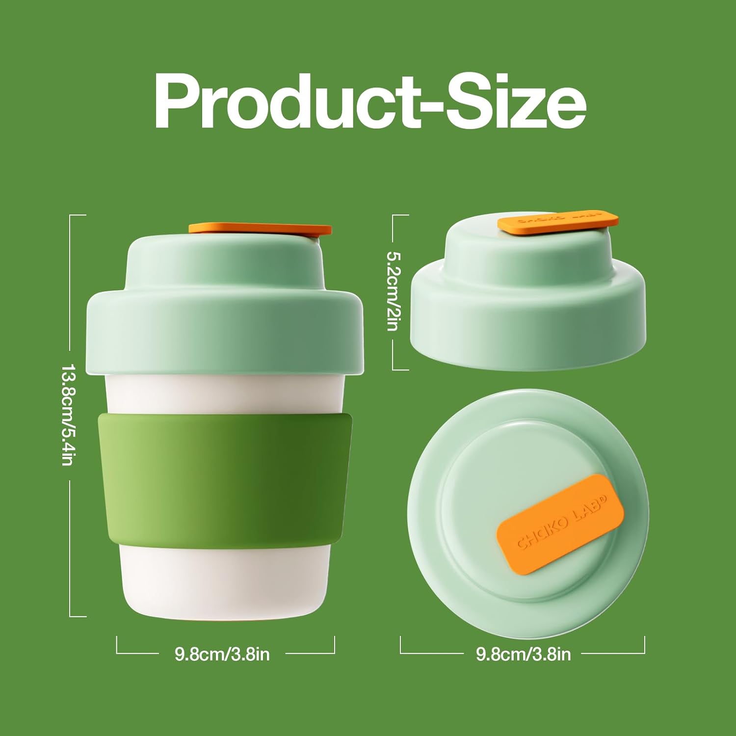 Зелена чашка Chako Lab Coffee Cup об’ємом 420 мл — стильний та функціональний вибір для щоденного використання. Завдяки подвійній вакуумній ізоляції та внутрішньому керамічному покриттю, напої залишаються гарячими або холодними до 6 годин, зберігаючи свій природний смак і аромат.