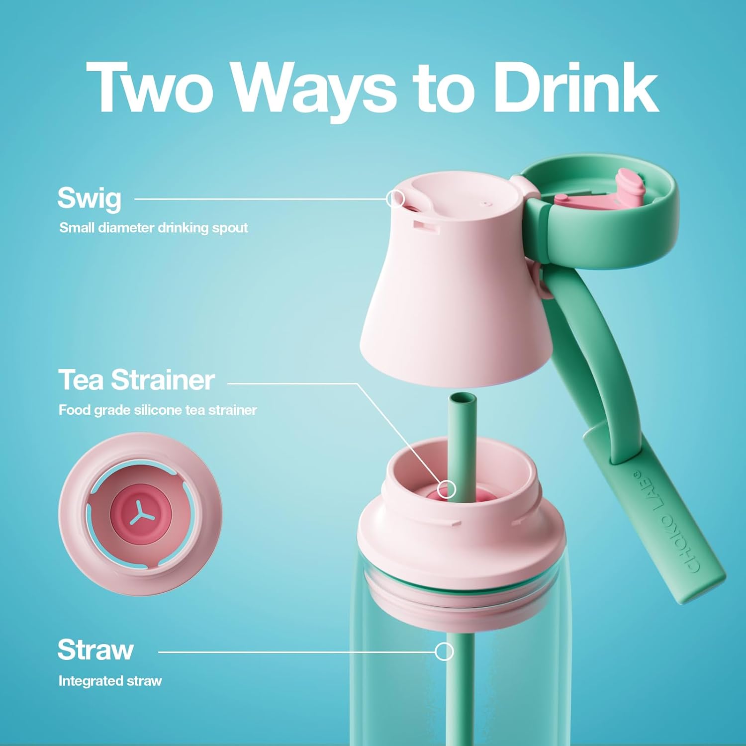 - Має два способи пиття — через трубочку або безпосередньо, коли хочеться зробити великий ковток